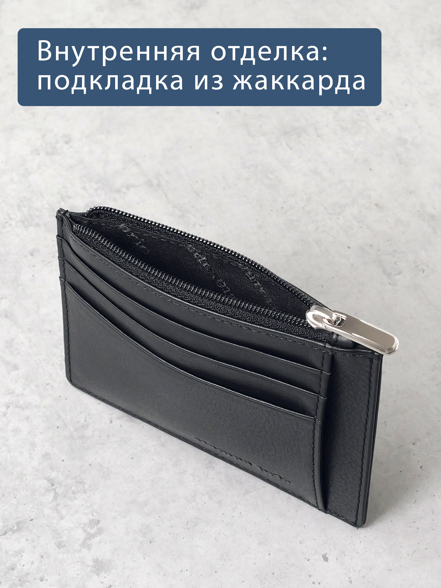 Мужской картхолдер выполнен из натуральной мягкой кожи. Подкладка - жаккард. Предназначен для хранения дисконтных и кредитных карт. Снаружи расположены 6 карманов для карт, два глубоких кармана и один глубокий карман по центру на молнии.