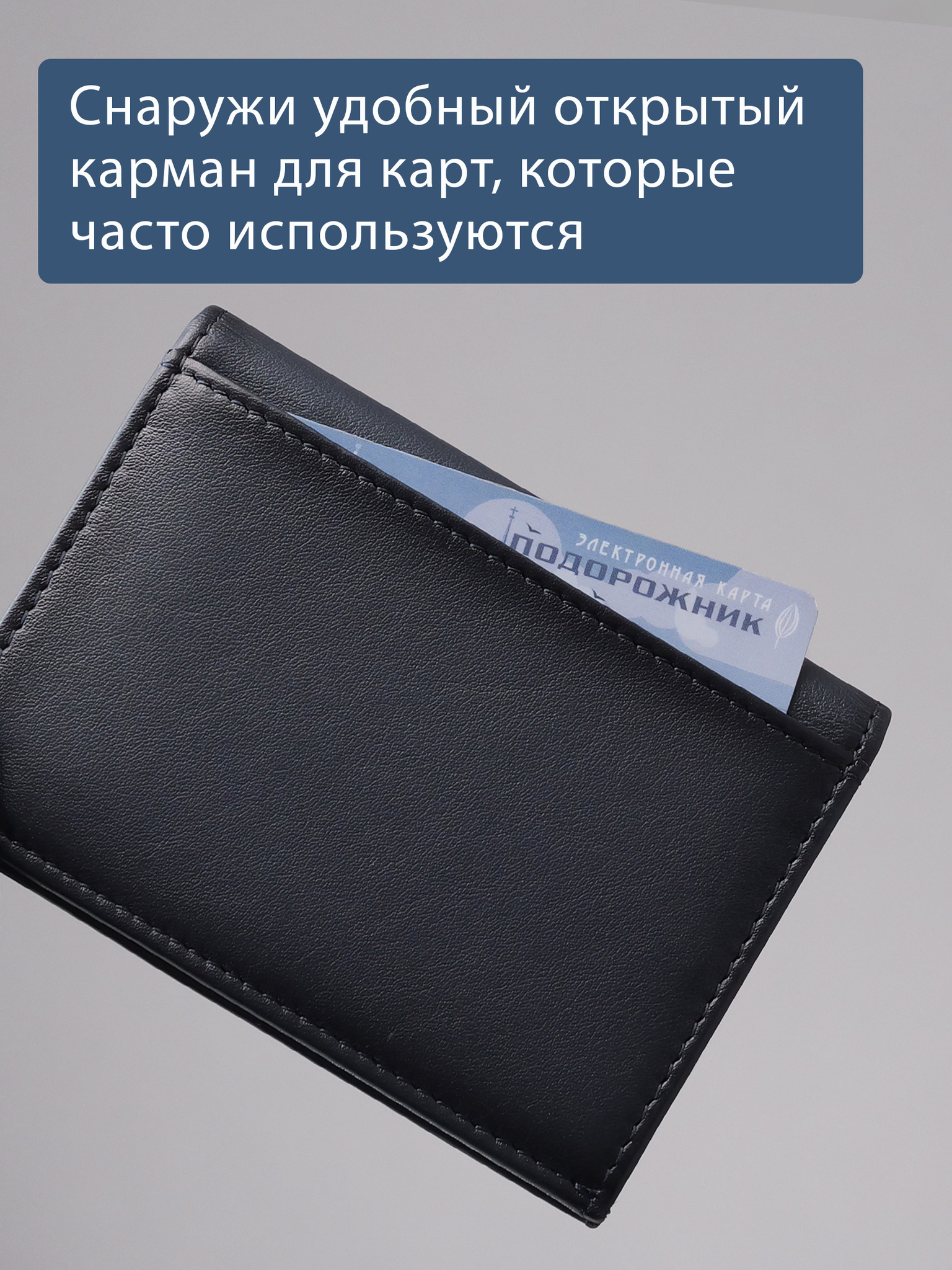 Подойдет для хранения банковских и дисконтных карт, а также собственных визиток. Можно использовать как небольшой кошелёк. Выполнен из натуральной мягкой кожи серого цвета с декоративным затемнением по краям. Подкладка - жаккард. Внутри предусмотрены 4 кармана для карт, глубокий карман и одно раскрывающееся отделение, которое удобно использовать для хранения своих визиток. Снаружи расположен глубокий открытый карман.
