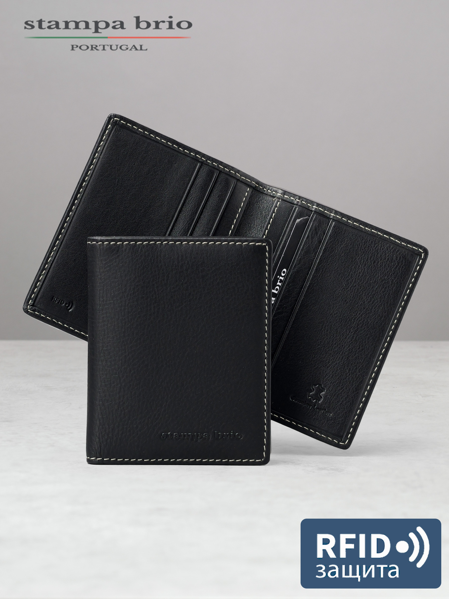 Компактный футляр подойдет для хранения банковских и дисконтных карт. Выполнен из натуральной мягкой, гладкой кожи Наппа чёрного цвета. Строчка бежевая. Подкладка - жаккард. Внутри предусмотрены 6 карманов для карт и 2 боковых кармана. Дополнительно оснащен защитной системой RFid (от дистанционного считывания карт).