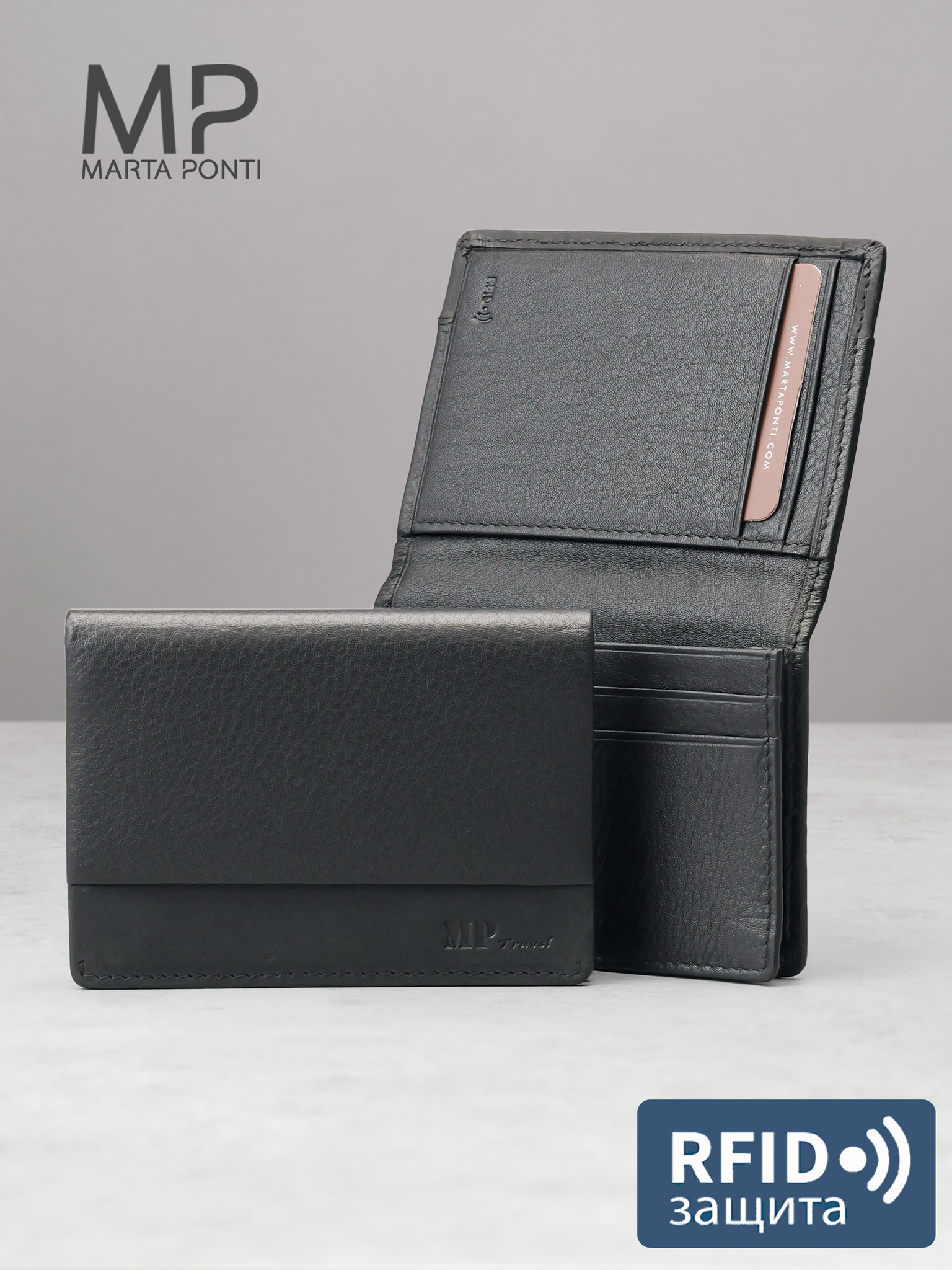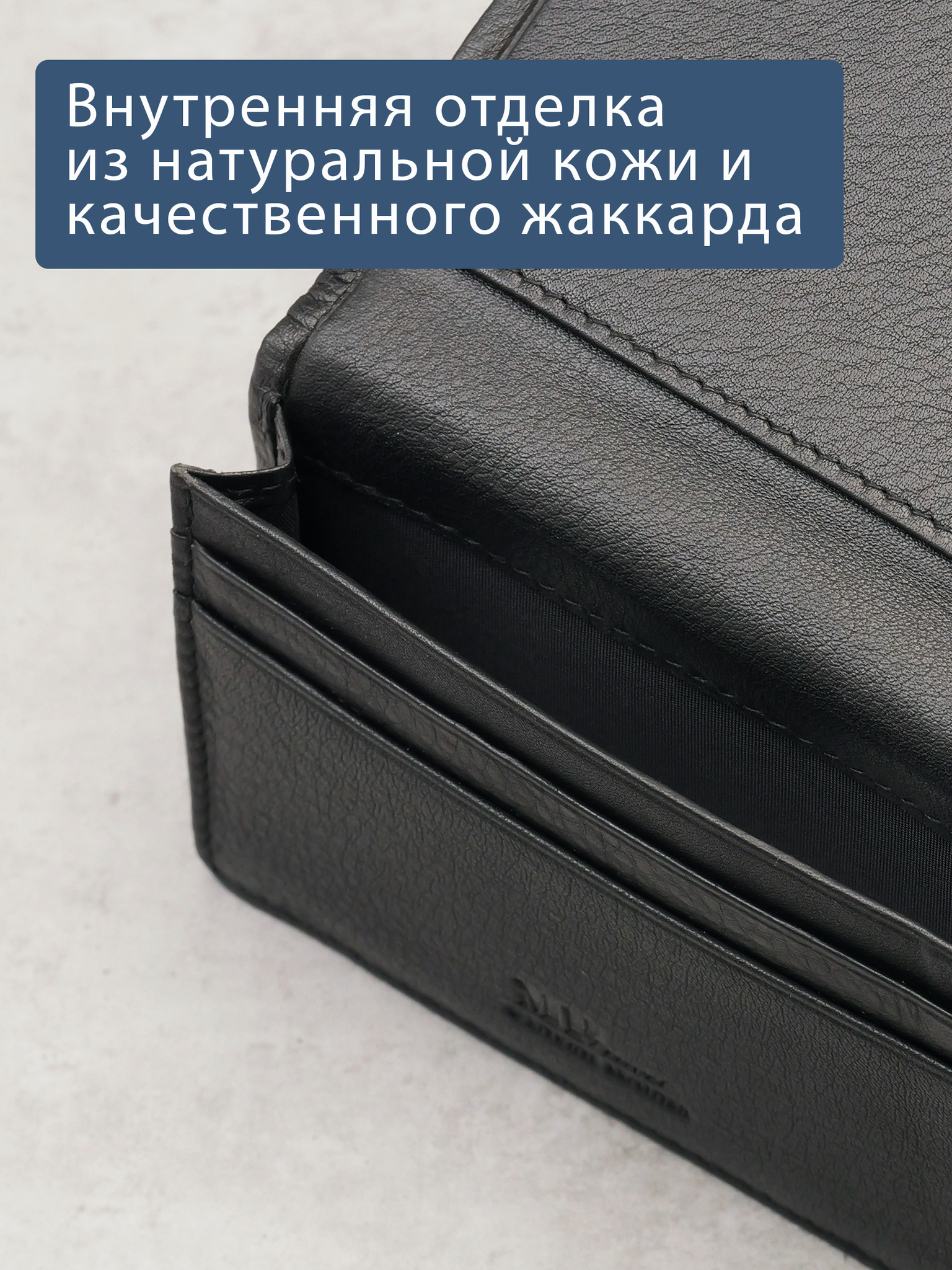 Портмоне-картхолдер с RFID защитой. Выполнен из натуральной мягкой кожи Наппа чёрного цвета со вставкой из нубука. Подкладка- жаккард. Внутри предусмотрены 4 ячейки для карт, 2 кармана, один из которых- объёмный ( удобен для использования своих визиток). Снаружи- боковой карман. Дополнительно оснащён защитной системой RFID ( от дистанционного считывания карт).